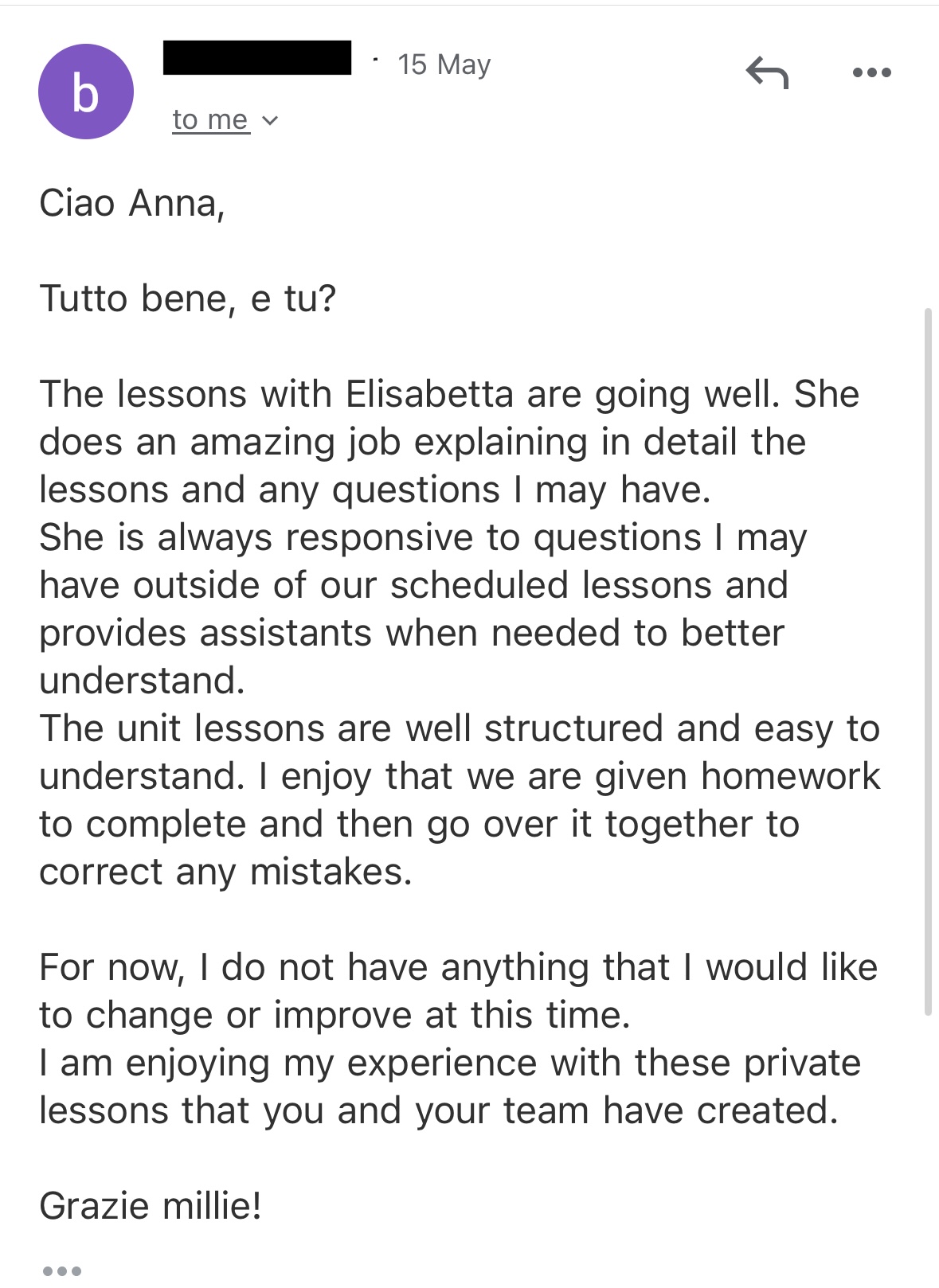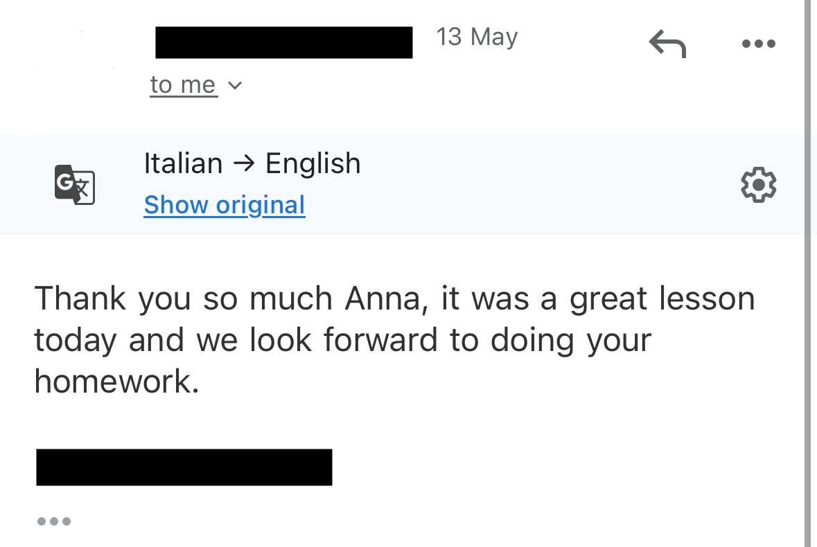 "Its been fantastic learning Italian with Anna! All of a sudden, I've improved so much!” - Katy
