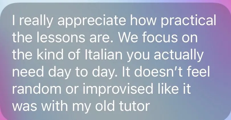 You need someone who actually cares about building your italian up naturally. Focusing on the conversations you love and the culture you're becoming a part of.